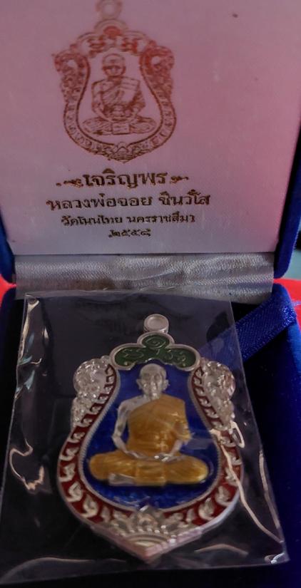 เหรียญเสมาเจริญพร หลวงพ่อจอย ชินวํโส เนื้อเงินลงยา 4 สี เลข ๑๓๑ วัดโนนไทย ปี 2558