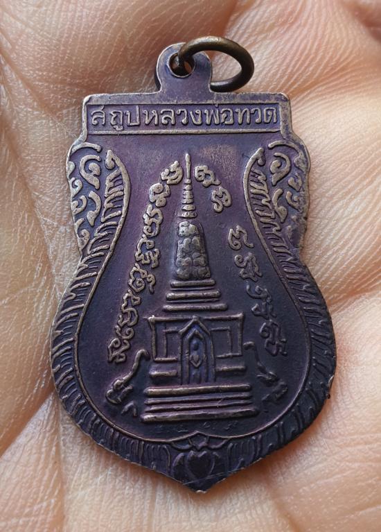 เหรียญหลวงปู่ทวด วัดช้างให้ พิมพ์เสมาพุฒซ้อน เนื้อทองแดงรมดำ ปี 2539 หลังสถูป |