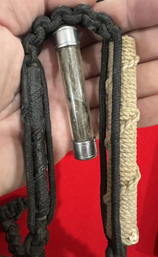 ตะกรุด 3 ดอก ปลัดขิก 1 ตัว พร้อมเชือกคาดเอว ไม่ทราบที่ครับ