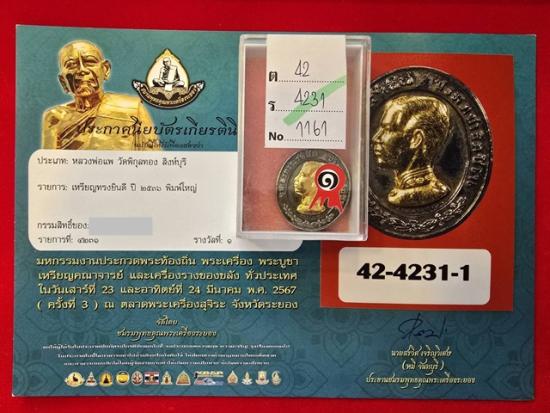 ***ติดรางวัล***เหรียญทรงยินดี พิมพ์ใหญ่ ปี 2536 หลวงพ่อแพ วัดพิกุลทอง ติดรางวัลที่ 1 <279>