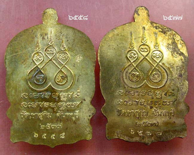 เหรียญนั่งพาน เนื้อทองเหลือง หลวงพ่อสมชาย วัดเขาสุกิม ตอกโค้ด ส และโค้ด จำนวน 2 เหรียญ หมายเลข ๖๕๕๘ และ ๖๕๗๗ ได้มาจากคนในพื้นที่