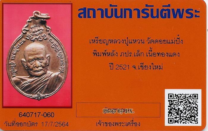 เหรียญ หลวงปู่แหวน วัดดอยแม่ปั๋ง จ.เชียงใหม่