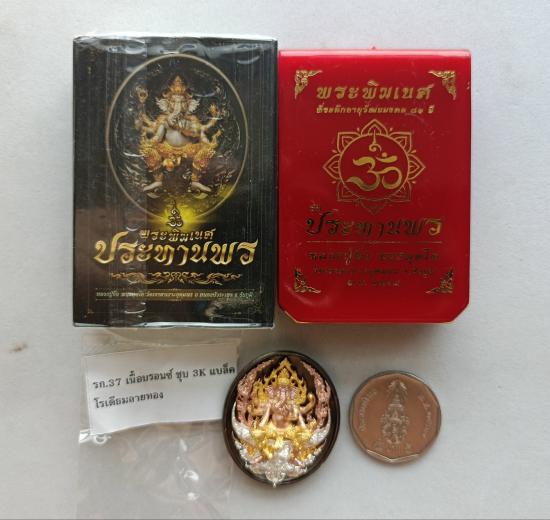 วัดใจเคาะเดียวแดงจ้า เหรียญพุทธศิลป์พระพิฆเนศ หลวงปู่จื่อ หลวงปู่ศิลาเสก เนื้อบรอนซ์ชุบ3Kแบล็คโรเดี่ยมลายทอง เคาะเดียวแดงจ้า |