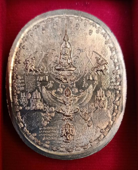 หรียญนั่ง พระเจ้าตากสินมหาราช ทรงครุฑ ปราบอริราชศัตรูพ่าย ด้านหลังนารายณ์ทรงครุฑ ขนาด 4.5 x 3.5 ซม. เนื้อทองแดงขัดเงา อาจารย์ศุภณัฐ ชัยชนิตย์หรืออาจารย์หม่อมเป็นประธานในการจัดสร้าง ณ ศาลสมเด็จพระเจ้านเรศวรมหาราช จ.พระนครศรีอยุธยา |