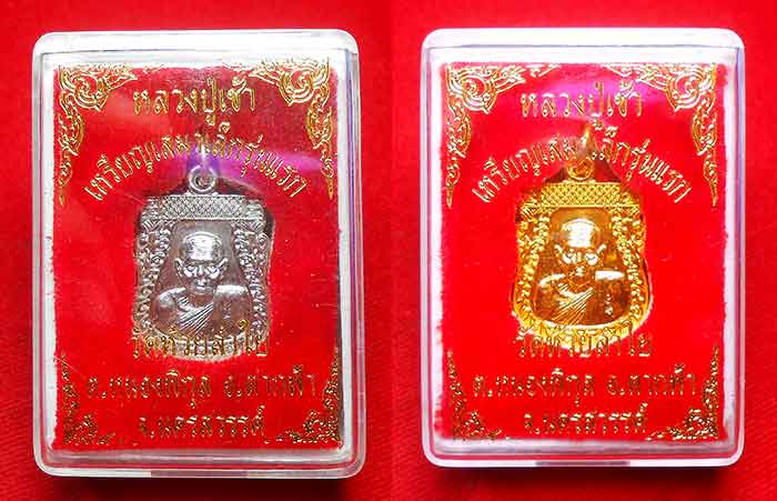 2 องค์***หลวงปู่เช้า วัดห้วยลำไย ต.หนองพิกุล อ.ตากฟ้า จ.นครสวรรค์ เนื้อกะไหล่เงิน + เนื้อกะไหล่ทอง+ เหรียญเสมาเล็ก รุ่นแรก ปี 2555 |