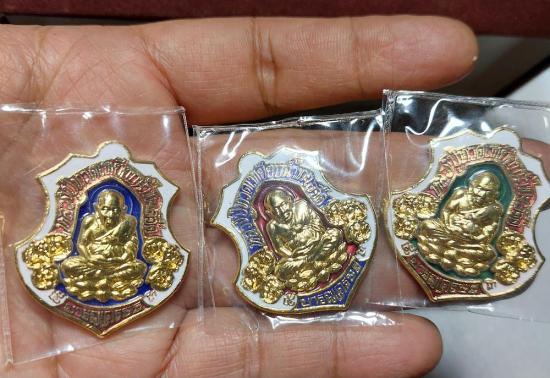 เหรียญกะไหล่ทองลงยาตอกโค๊ตเลข97ชัด3องค์