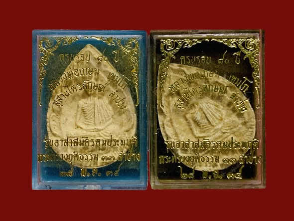 พระผงหยดน้ำ หลวงพ่อเกษม เขมโก ครบ 80 ปี รุ่นอาสาสมัครคุมประพฤติ กระทรวงยุติธรรม ปี 2533 กล่องเดิม |