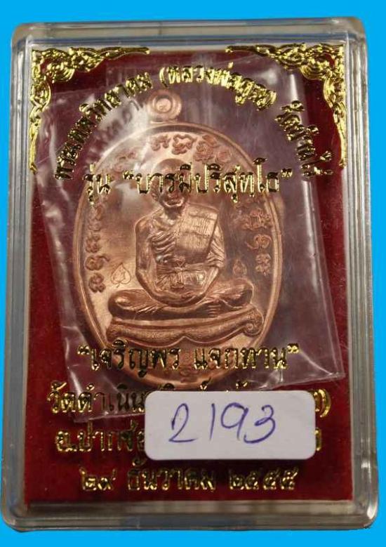 พระสวย.. เหรียญหลวงพ่อคูณ เจริญพรแจกทาน (เจริญพร2) เนื้อทองแดง No.2193 กล่องเดิม |