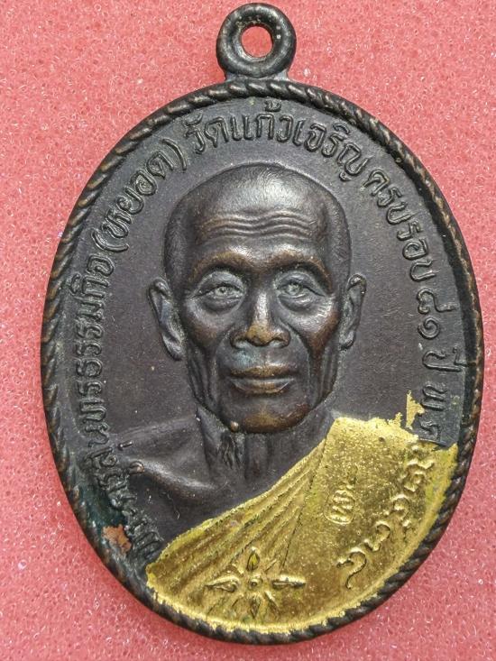 เหรียญหลวงพ่อหยอด วัดแก้วเจริญ รุ่นทรัพย์ล้นเหลือ นะ เมตตา ระงับภัย ทาทอง ชัดเจน สภาพสวย