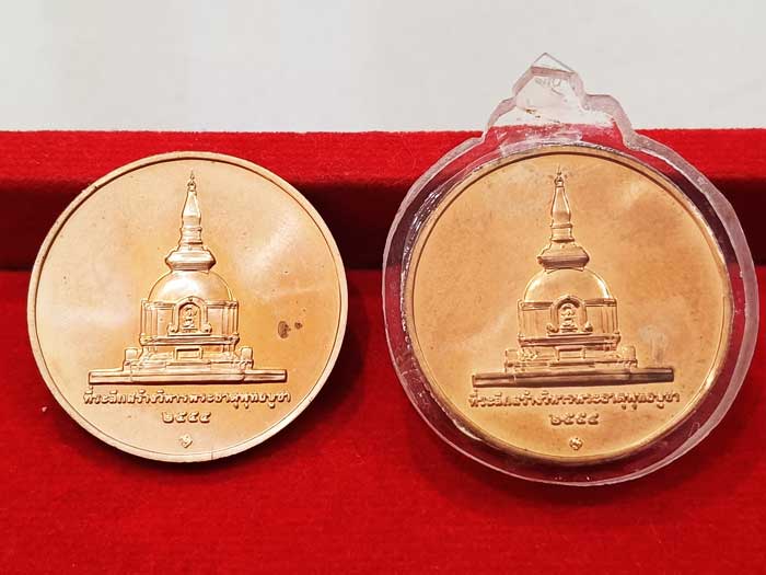 วัดใจ 2 เหรียญ 100 เดียวแดง ++ เหรียญที่ระลึกสร้างวิหารพระธาตุพุทธบูชา สภาพสวย |