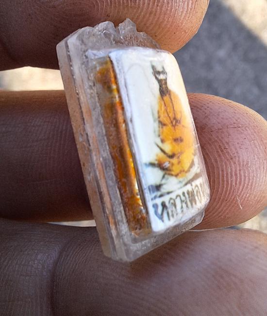 รูปถ่ายหลวงพ่อทบแต้มสี หลังตะกรุด 3 K ปั้มยันต์ วัดช้างเผือกปี 2516 สวย เลี่ยมเดิม