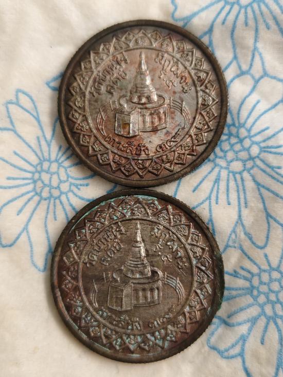 เหรียญขอบสตางต์ รุ่นมีกูไม่จน หลวงพ่อคูณ วัดบ้านไร่ หลังเจดีย์เกาะสีชัง ปี2539 เนื้อนวะ 2เหรียญ
