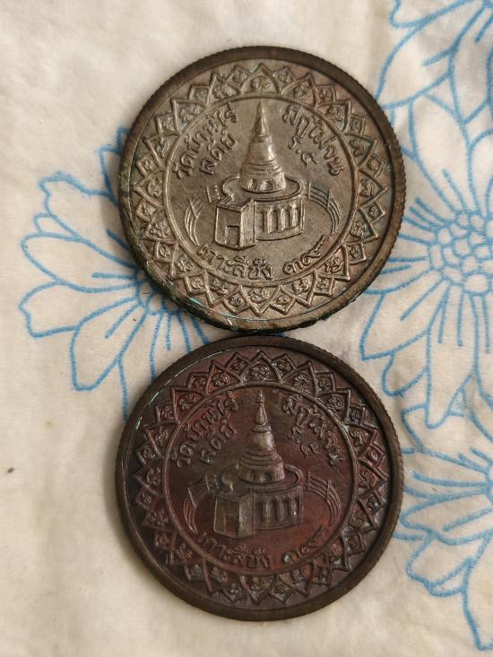เหรียญขอบสตางต์ รุ่นมีกูไม่จน หลวงพ่อคูณ วัดบ้านไร่ หลังเจดีย์เกาะสีชัง ปี2539 เนื้อนวะ 2เหรียญ