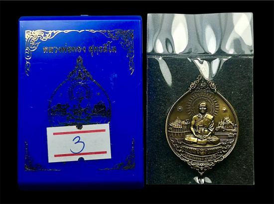 ชื่อพระเครื่อง เหรียญหลวงพ่อทอง วัดบ้านไร่ รุ่น บูรพาจารย์ "เนื้อทองระฆังซาติน" หมายเลขสวย "3"