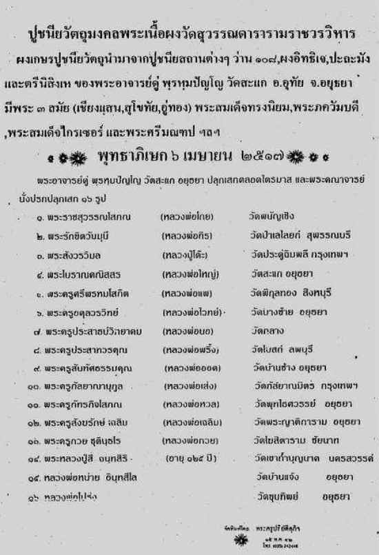 #หลวงปู่ดู่พรหมปัญโญวัดสะแกอยุธยาปลุกเสกไตรมาสเดียว และจัดพิธีนั่งปรกปลุกเสก โดยพระคณาจารย์ 16 รูป ณ วัดสุวรรณดาราราม