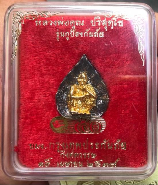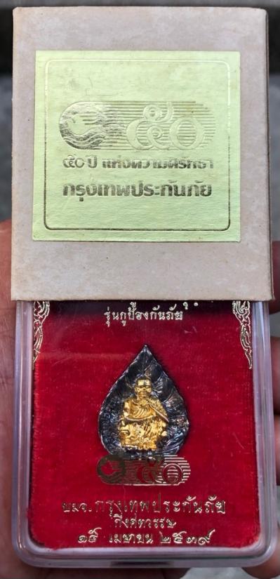 หลวงพ่อคูณ เหรียญรูปเหมือนใบโพธิ์ เนื้อเงินหน้าทอง รุ่นกูป้องกันภัย 50ปี บมจ.กรุงเทพประกันภัย ปี39 สวยๆพร้อมกล่องเดิม