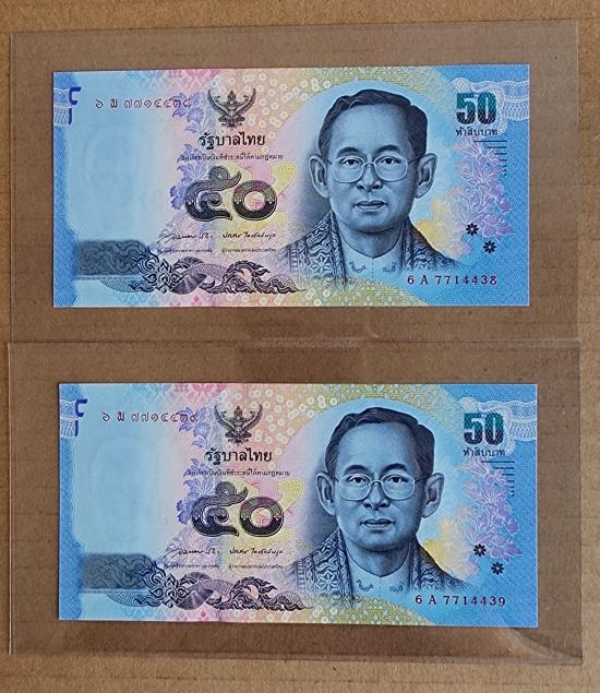 ให้จริง ธนบัตร ๕๐ บาท แบบ 16 (เลขเรียงติดกัน) จำนวน 2 ใบ สภาพใหม่ไม่ผ่านการใช้งานมาพร้อมพลาสติกใสครับ |