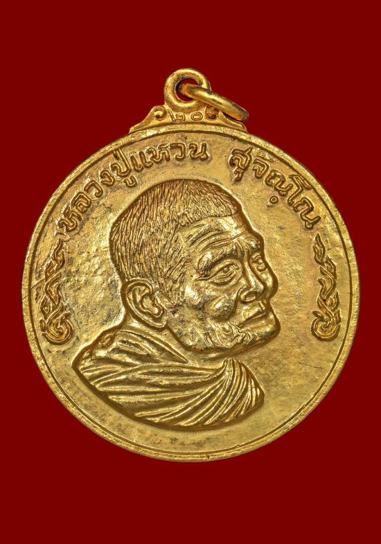 เหรียญชนะศึกเนื้อทองแดง กะไหล่ทอง ตอกโค๊ต หลวงปู่แหวน สุจิณฺโณ วัดดอยแม่ปั๋ง พ.ศ.2520