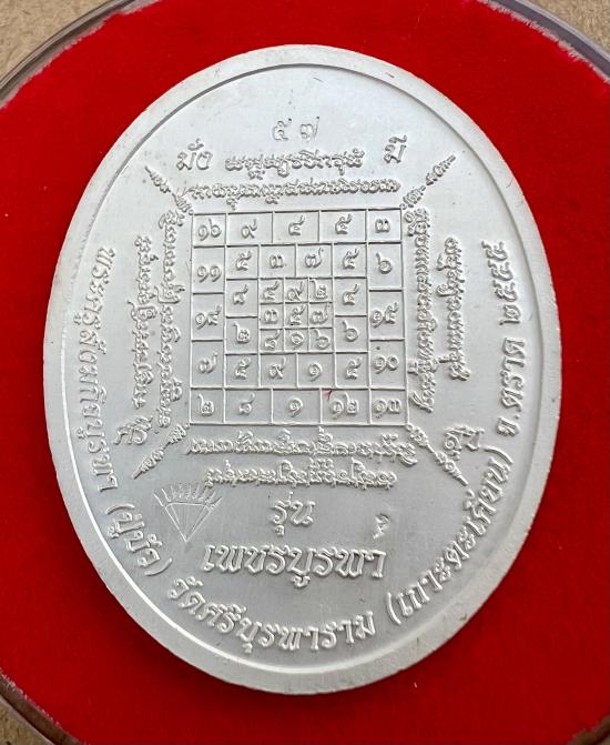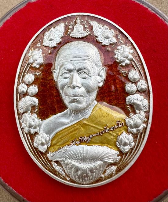 เหรียญเพชรบูรพา ปี55 เนื้อเงินลงยาสีส้ม หมายเลข57 กล่องเดิม เสกถึง2วาระและเสกเต็ม1ไตรมาส จัดสร้างน้อยเพียง2,555เหรียญเท่าปีสร้าง ราคาจอง3,000บาท
