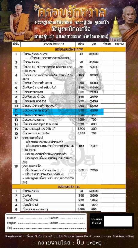 วัดใจราคา เหรียญ มนต์พระกาฬ รุ่นครอบจักรวาล ปี67 หลวงปู่เวิน คุเณสโก วัดบูรพาโคกเครือ จ.กาฬสินธุ์ หลวงปู่มหาศิลา สิริจันโท ร่วมปลุกเสก เนื้อนวะหน้ากากทองคำ เลข 367 มีกล่องเดิม จอง 4999 บาท บล็อกทองคำ