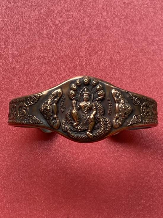 เคาะเดียวแดง กำไล องค์พ่อจตุคาม-รามเทพ รุ่นมงคลจักรวาล เนื้อสำริด เลข 565