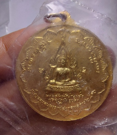 ด้านหลังเป็นพระรูปของ พระสัพพัญญูเจ้า พระประธานในพระอุโบสถวัดสุปัฏนารามวรวิหาร ซึ่งเป็นพระพุทธรูปที่ศักดิ์สิทธิ์ยิ่งองค์หนึ่งในจังหวัดอุบลฯ มีอักขระขอมติดองค์พระว่า อะ อุ มะ อะ คือ อะระหัง แปลว่า ผู้ไกลจากกิเลสซึ่งหมายถึงพระพุทธเจ้า อุ คือ อุตตมะธัมโม หมายถึง พระสัจธรรมอันเลิศเมื่อพระพุทธองค์ตรัสออกมาแล้วย่อมเป็นหนึ่งไม่มีสอง และ มะ คือ มหาสังโฆ แปลว่า พระสงฆ์หมู่ใหญ่ |