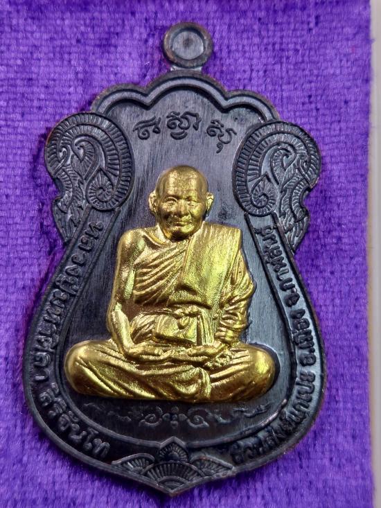 เหรียญเสมารวยทันใจ หลวงปู่ศิลา สิริจันโท รุ่นรวยรวยล้านล้าน เนื้อทองแดงรมดำหน้ากากทองทิพย์ แจกกรรมการ จัดสร้าง1,999องค์ no.60