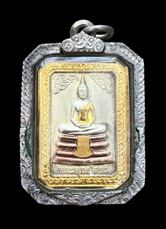 เหรียญแสตมป์หลวงพ่อโสธร #รัชกาลที่ 5 รุ่นสร้างอุโบสถ ปี2539 เนื้อ 3 กษัตริย์ เลี่ยมเงินยกซุ้มหนาๆ |