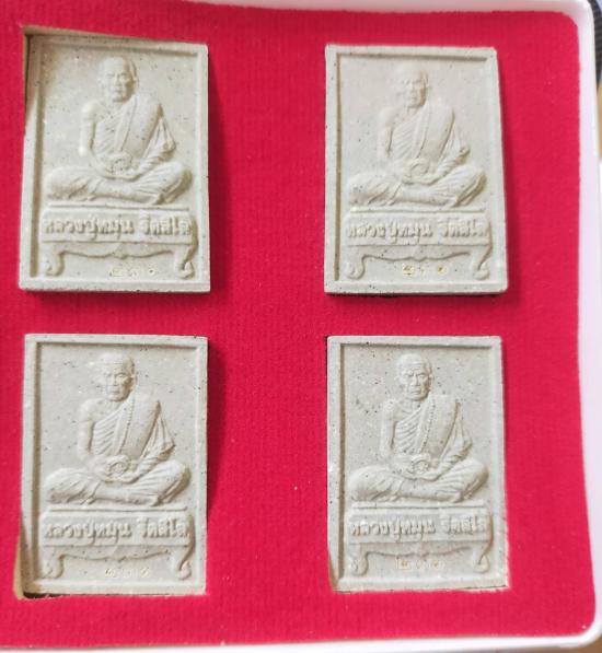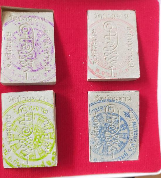 พระผง หลวงปู่หมุน นั่งตั่ง ชุดกรรมการ วัดสร้างเอง หลังตรายาง 4 องค์ 4 สี เคาะเดียว |