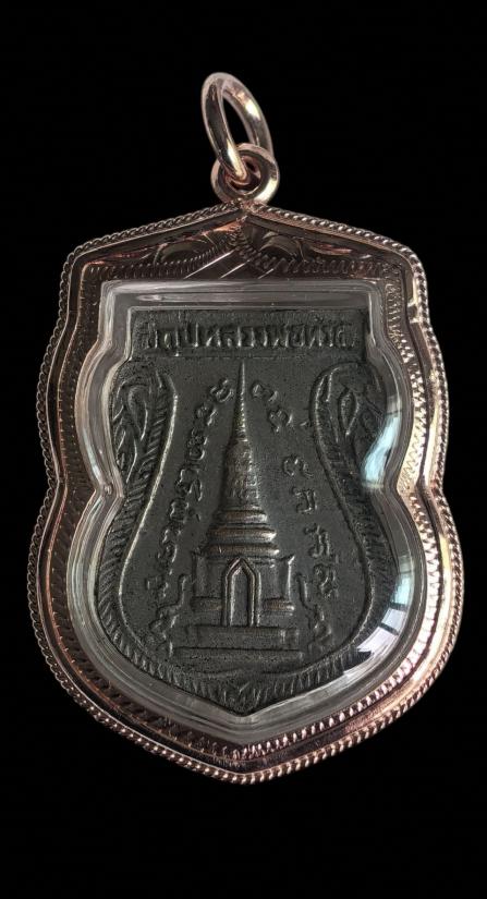 เหรียญเสมาหน้าเลื่อนหลังสถูป หลวงปู่ทวด วัดช้างให้ จ.ปัตตานี เนื้ออัลปาก้าชุปนิเกิ้ล ปี 2511 นิยมสุด พร้อมกรอบนาก (แดง 7,000)