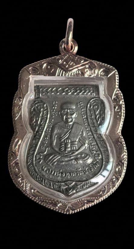 เหรียญเสมาหน้าเลื่อนหลังสถูป หลวงปู่ทวด วัดช้างให้ จ.ปัตตานี เนื้ออัลปาก้าชุปนิเกิ้ล ปี 2511 นิยมสุด. เหรียญรุ่นนี้เป็นหนึ่งในเหรียญยอดนิยมของหลวงปู่ทวดวัดช้างให้ครับ. สภาพสวยคมชัด จมูโด่ง หน้าตาติดชัด ผิวเดิมๆ แต่โดนตัดหูด้านบนของเหรียญแต่เดิมครับ เหรียญนี้แท้ดูง่าย มาพร้อมกรอบเงินชุบนากกันน้ำสั่งทำหนาๆครับ