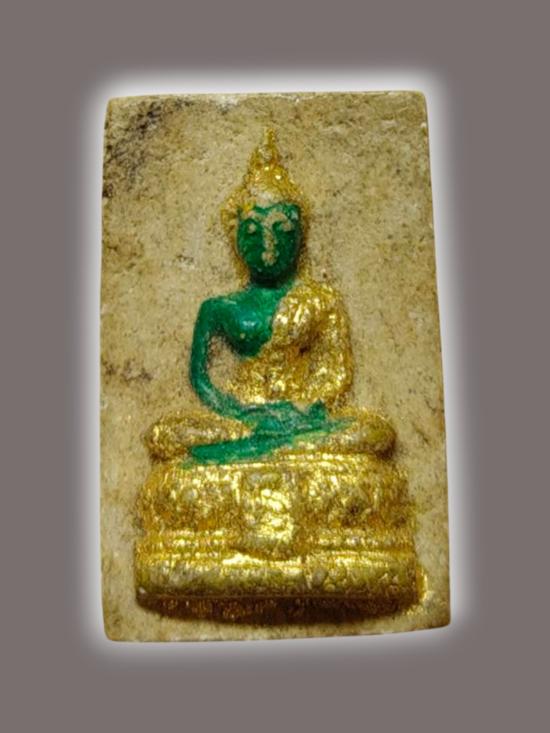 A6413.เนื้อผงสี่เหลี่ยม พระเเก้วมรกต หลังยันต์ ไม่ทราบที่ เคาะเดียวเเดง |