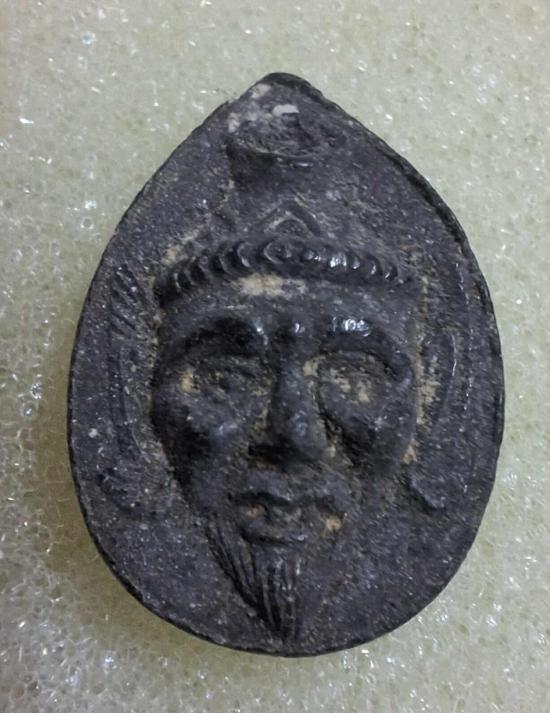 เศียรพ่อแก่ฤาษี รุ่นแรก หลวงพ่อสาคร วัดหนองกรับ ปี 2530 เนื้อดินเจ็ดโป่ง |