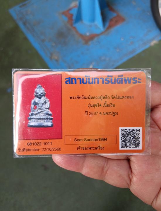 พระชัยวัฒน์หลวงปู่หลิววัดไร่แตงทองรุ่นสุขใจเนื้อเงินปี 37