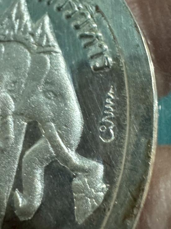 เหรียญ รัชกาลที่ 5 หลังช้างสามเศียร วัดตรีทศเทพ ตอกโค๊ต เนื้อเงิน น้ำหนัก 12.7 กรัม ตอกโค๊ต ชฎา และ ยันต์