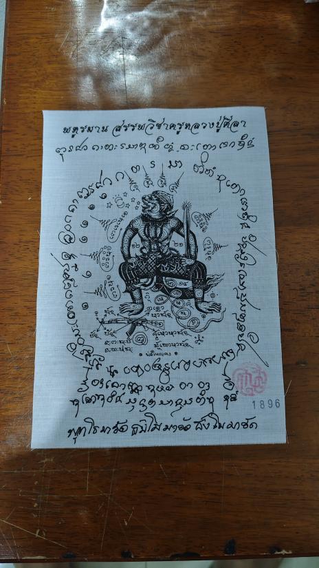 ผ้ายันต์พหูรมานรุ่นแรก แจกในพิธี โดยหลวงปู่ศิลาปลุกเสก no.1896 |