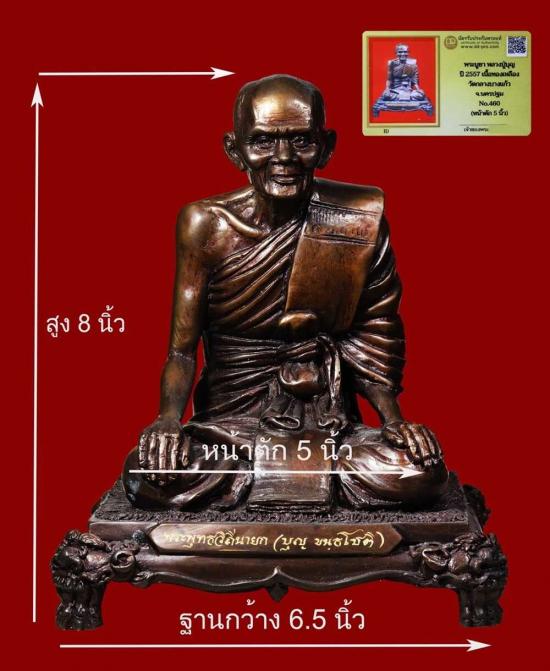 พระบูชา หลวงปู่บุญ ปี 2557(5 นิ้ว) เนื้อทองเหลือง วัดกลางบางแก้ว จ.นครปฐม พร้อมบัตร