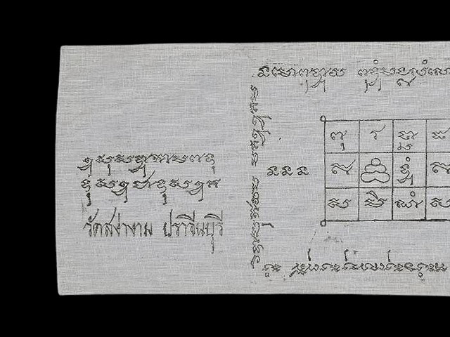 ***ผ้ายันต์กันฟ้า ขนาด 6x16 นิ้ว หลวงพ่อผิว วัดสง่างาม จ.ปราจีนบุรี ปี 2515*** |