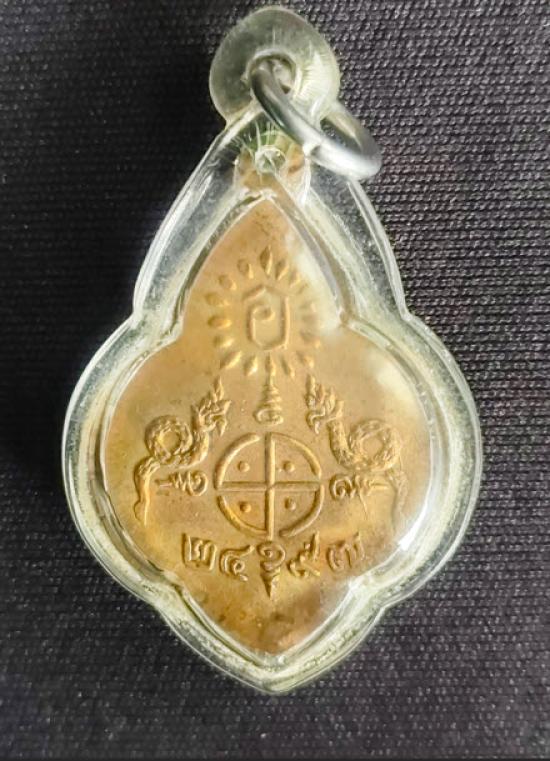 เหรียญหลวงพ่อโอภาสี อาศรมบางมด พิมพ์พุ่มข้าวบิณฑ์ เนื้อทองแดงกะไหล่ทอง ปี 2497 กรุงเทพฯ เลี่ยมพร้อมห้อยคอ |