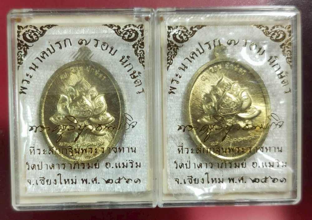 พระนาคปรก 7 รอบนักษัตร หลวงปู่บัวเกตุ ปทุมสิโร เนื้อทองฝาบาตร จำนวน 2 เหรียญ |