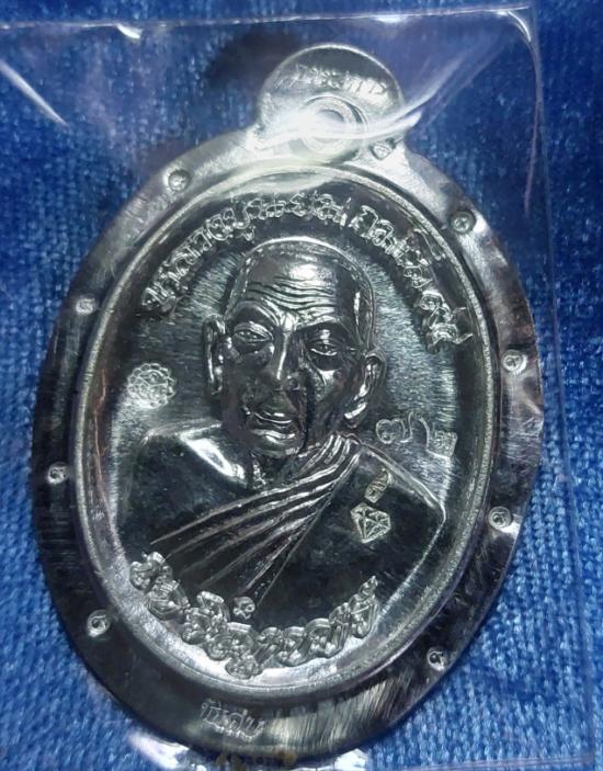 เหรียญเจริญพรเมตตามหานิยม หลวงปู่นิยม กมโล เนื้อเงินไม่ตัดปีก หลังยันต์ ๙รอบ กรรมการ no ๗๒ วัดแจ้งนอก ปี 2555 |