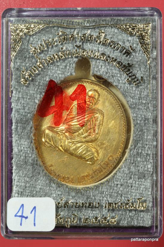 เหรียญหลวงพ่อสายทอง รุ่นประวัติศาสตร์ไตรภาคี ปี 2558 เนื้อกะไหล่ทอง โค๊ต๙แยกจากชุดกรรมการ หมายเลข 41 |