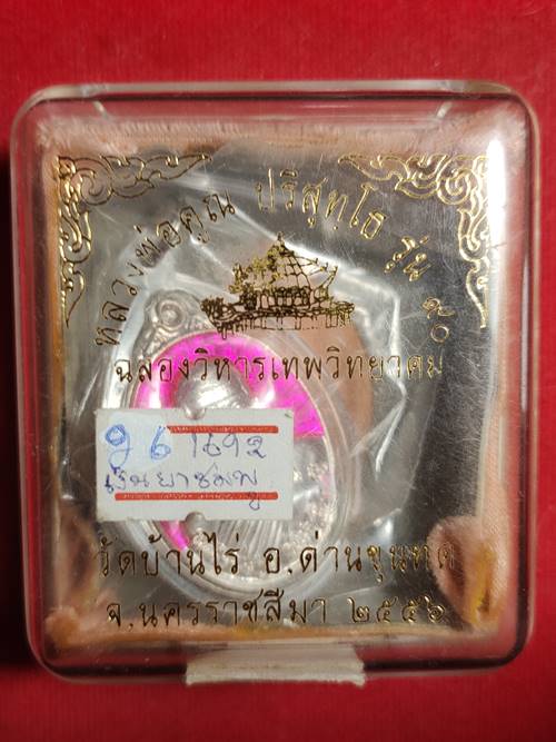 เหรียญหลวงพ่อคูณ ปริสุทโธ รุ่น ฉลองวิหารเทพ ออกวัดบ้านไร่ ปี 56 เนื้อ เงินลงยาสีชมพู หมายเลข 1692 เลี่ยมพร้อมใช้ เคาะเดียวแดง |