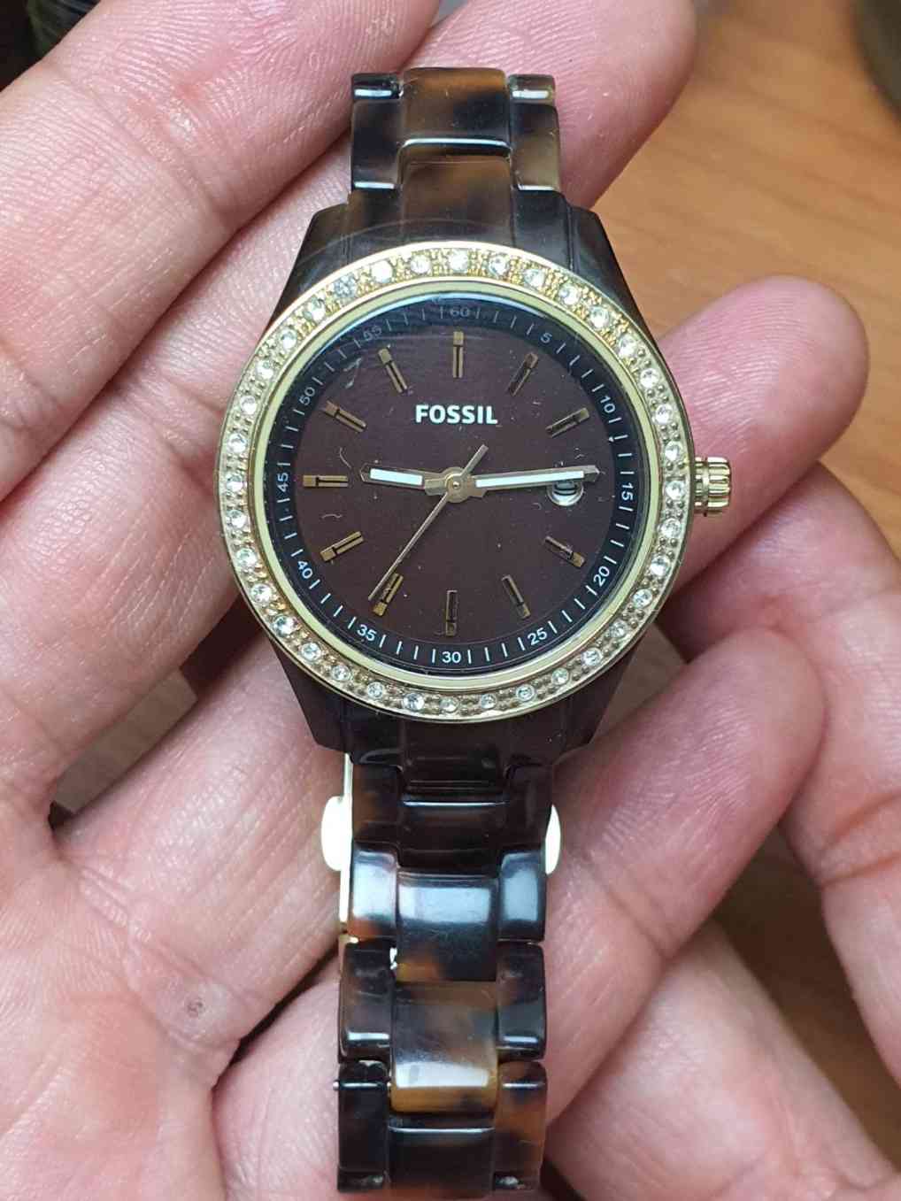 นาฬิกา Fossil ES2922 Woman สายอะคริลิค ลายกระสีน้ำตาล หน้าปัดประมาณ 3 ซม ใช้งานได้ปกติ เดินได้ปกติ |