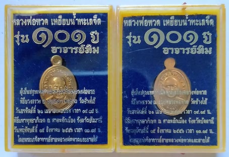 หลวงปู่ทวด เม็ดแตง"รุ่น101ปีอาจารย์ทิม"เนื้อทองดอกบวบ2องค์ พิธีศาลหลักเมืองจ.ปัตตานี ปี2556 |