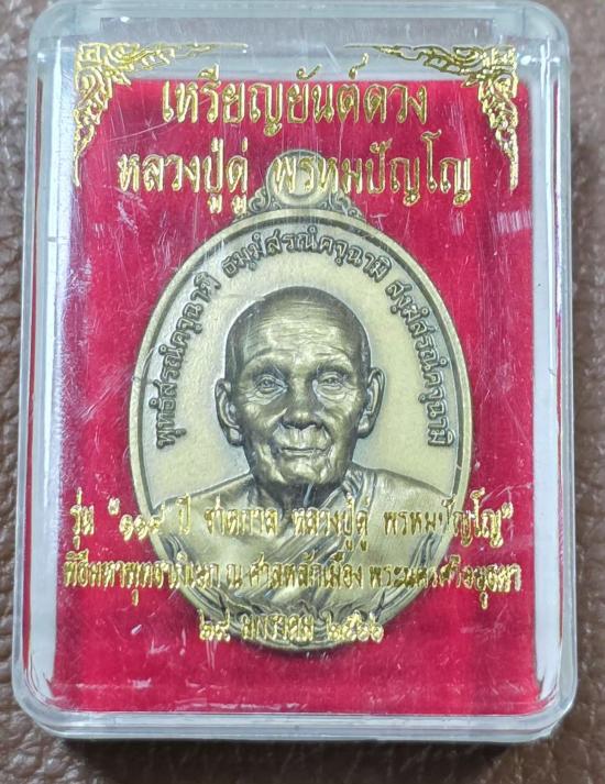 วัดใจ!!! เหรียญยันต์ดวง เหรียญหลวงปู่ดู่ เนื้อทองชนวนซาติน รุ่น 119 ปี ชาตกาล หลวงปู่ดู่พรหมปัญโญ พุทธาภิเษก 2 วาระ วาระ 1 ศาลหลักเมือง อยุธยา วาระ 2 หลวงตาม้า วัดถ้ำเมืองนะ |