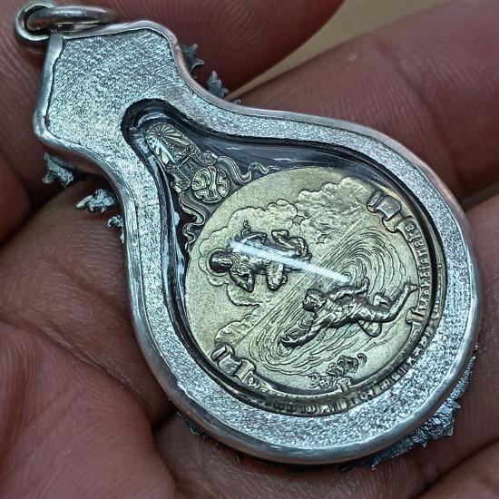 เหรียญพระมหาชนก พิมพ์เล็ก ปี2542 (((เนื้อเงิน))) พร้อมเลี่ยมกรอบเงินแท้ งาน 92.5% ขึ้น งานมือหนึ่ง กรอบหนา รมดำ สวยๆ classic.