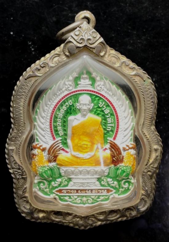 เหรียญหลวงพ่อรวย รุ่นรวยเงินล้าน สร้างที่วัดปราสาท นนทบุรี เนื้อเงินลงยาร้อนสีเขียว มีโค๊ด+เลข2หลัก44 เลขสวยครับ พร้อมเลี่ยมเงินปี2564
