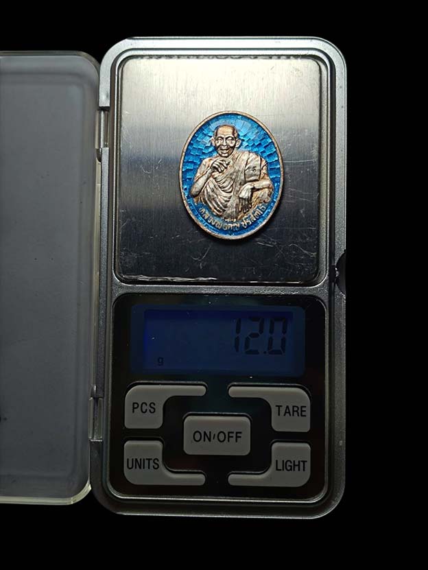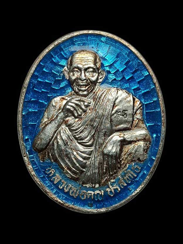 เหรียญหลวงพ่อคูณ ออกวัดเกาะแก้วอรุณคาม แยกจากชุดกรรมการ (เบอร์ 9) เนื้อเงิน ลงยาสีฟ้า (น้ำหนักเหรียญ 12.0 กรัม) ปี พ.ศ.2537 หลวงพ่อคูณ วัดบ้านไร่ ปลุกเสก พร้อมกล่อง