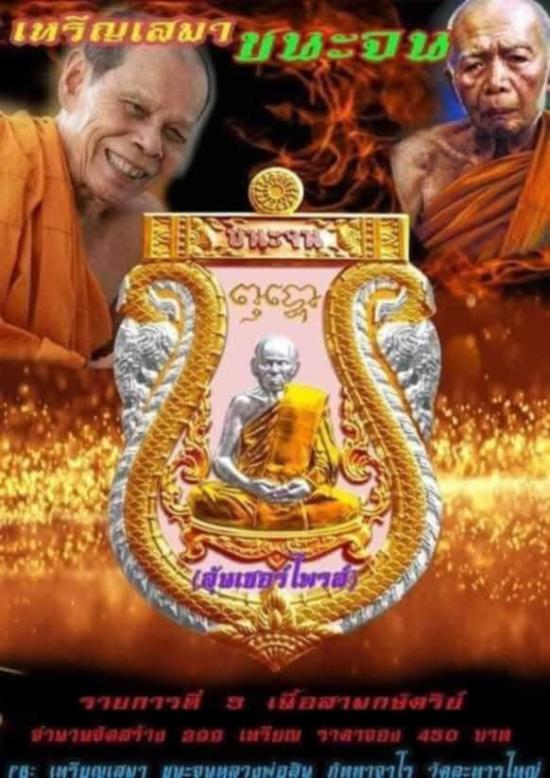 เหรียญเสมา ชนะจน หลวงพ่อสิน วัดละหารใหญ่ ระยอง ปี 2563 เนื้อเงินลงยา 3 สี จำนวนสร้างน้อยเพียง 39 องค์เท่านั้น